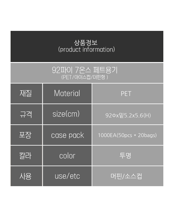 페트컵 92파이 7온스